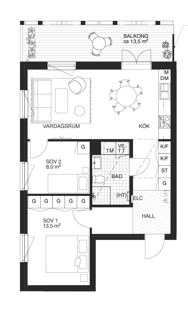 Här erbjuder vi en modern och välutrustad 3:a med en yta på 64 kvadratmeter. Lägenheten, som ligger på markplan, har en rymlig uteplats som nås via pardörrar från köket. Genom ljusinsläpp från två väderstreck skapas en ljus och luftig känsla. Köket och vardagsrummet är snyggt sammanlänkade, vilket ger en öppen och social atmosfär. Stort masterbedroom med gott om förvaringsmöjligheter samt ett mindre sovrum med plats för säng och förvaring.