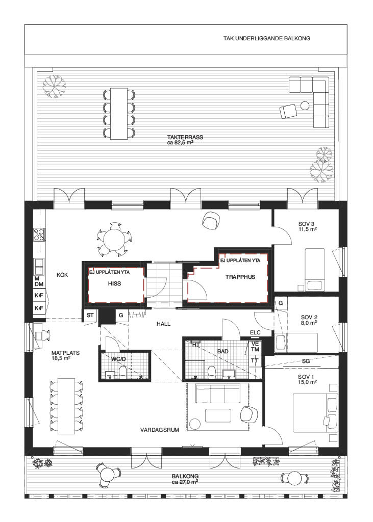 Egen oas uppe på taket med stor terrass om 82 kvm!