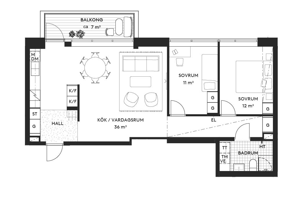 De 77 kvadratmeterna rymmer två välplanerade sovrum och ett helkaklat badrum utrustat med tvättmaskin och torktumlare. Det fullutrustade köket går i harmoniska linnetoner och ligger i semiöppen planlösning mot det luftiga vardagsrummet. Det är generöst med förvaringsmöjligheter både i lägenheten och tack vare ett tillhörande förråd på källarplan.